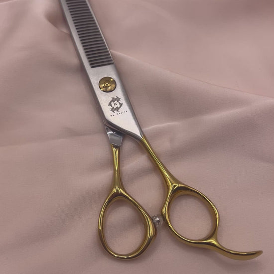 Made from premium Japanese 440c steel, this thinning scissor offers a positive, smooth cutting action that makes light work of bulk removal, softening lines, and blending transitions. Perfect for everyday use, it allows you to create a polished, professional groom on any coat type.