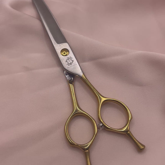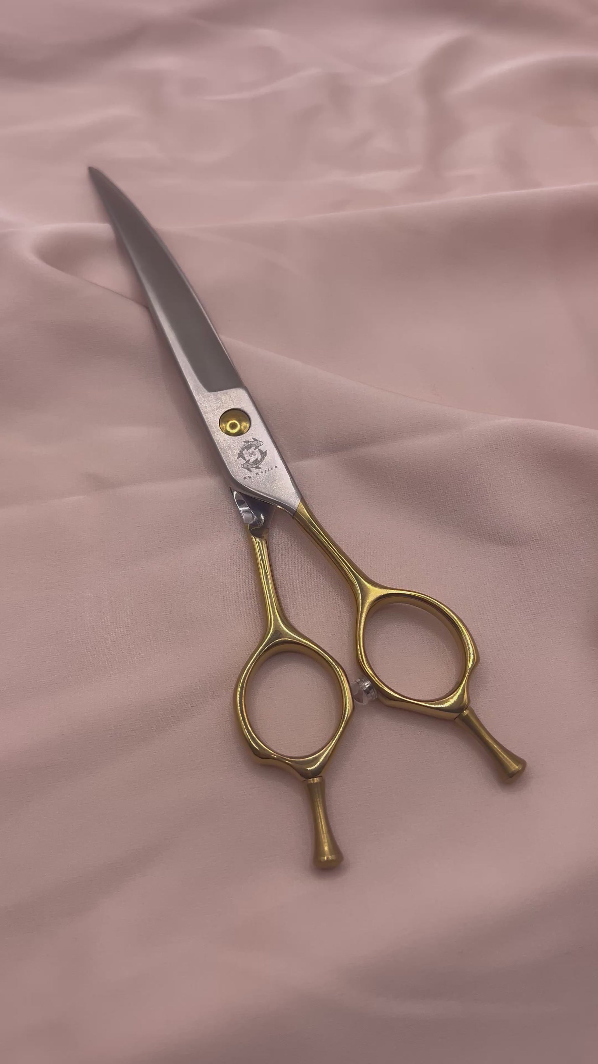 Bring precision and elegance to your grooming with the K by Kojiro 7" Gold & Silver Curved Scissor. Crafted from premium Japanese 440C steel, this professional grooming tool offers exceptional sharpness, smooth cutting action, and long-lasting durability.