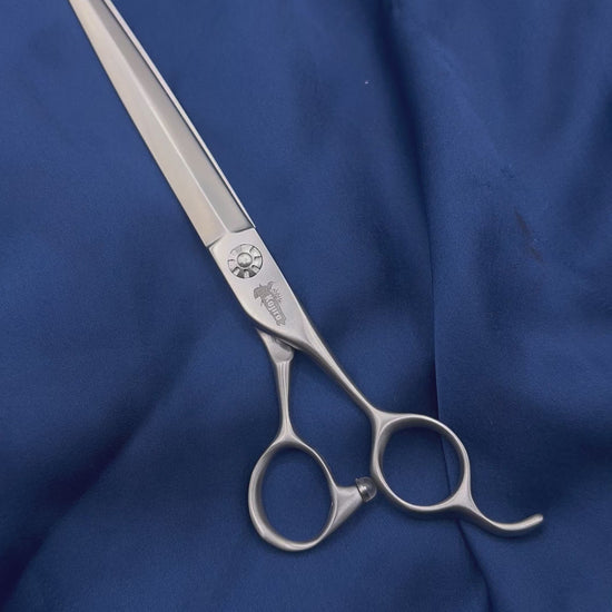 Designed for precision and power, the Kojiro Ivy with a sword blade edge delivers professional cutting performance with every groom. Crafted from premium Japanese 440C steel, it offers long-lasting sharpness, durability, and smooth action, making it an essential tool for professional groomers.