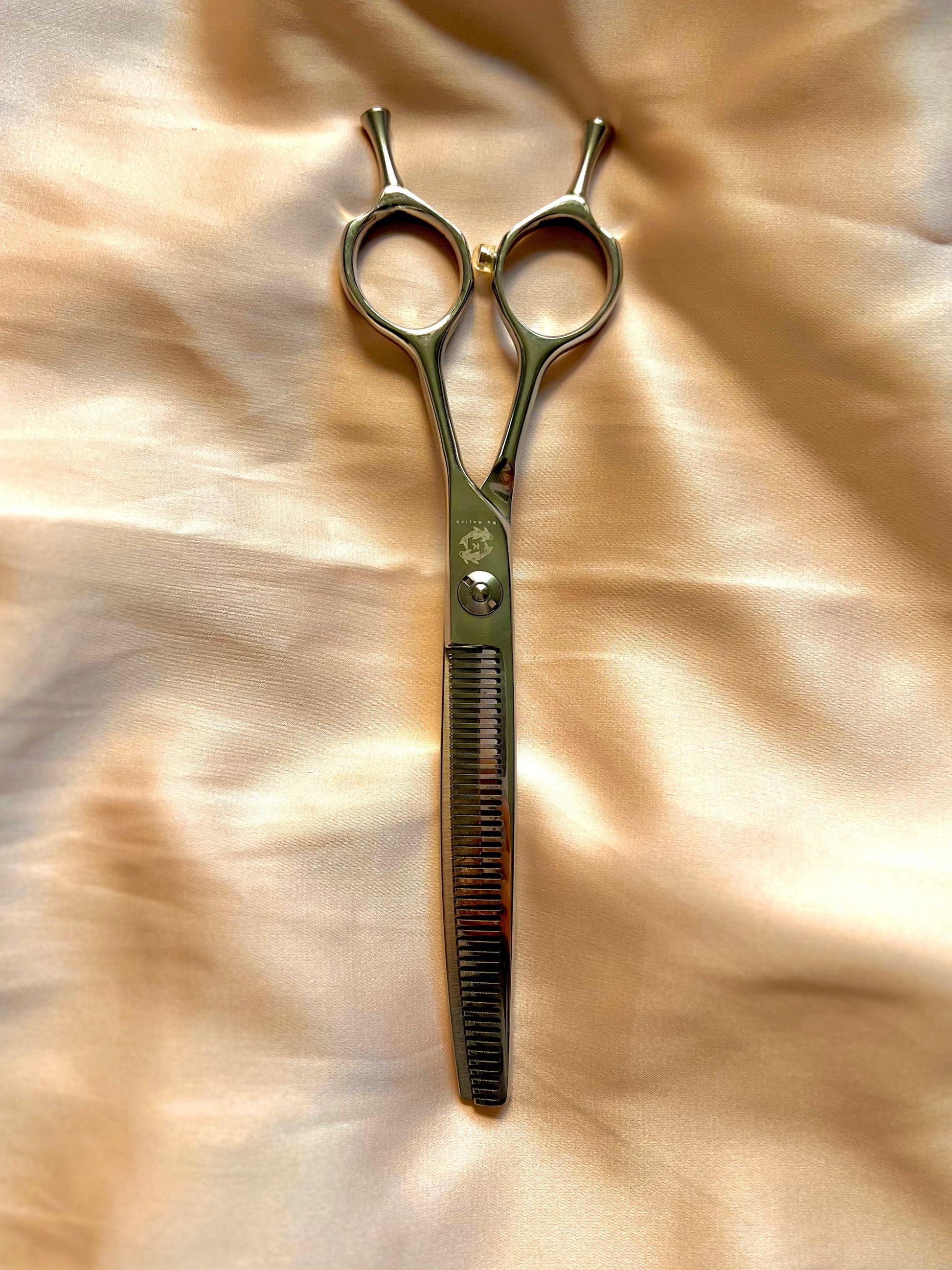 The Nami from K by Kojiro is a specialist tool designed for groomers who demand precision, balance, and artistry in every cut. Forged from Japanese 440C steel, this thinner combines durability with exceptional sharpness, allowing you to create a smooth, natural finish time after time.
