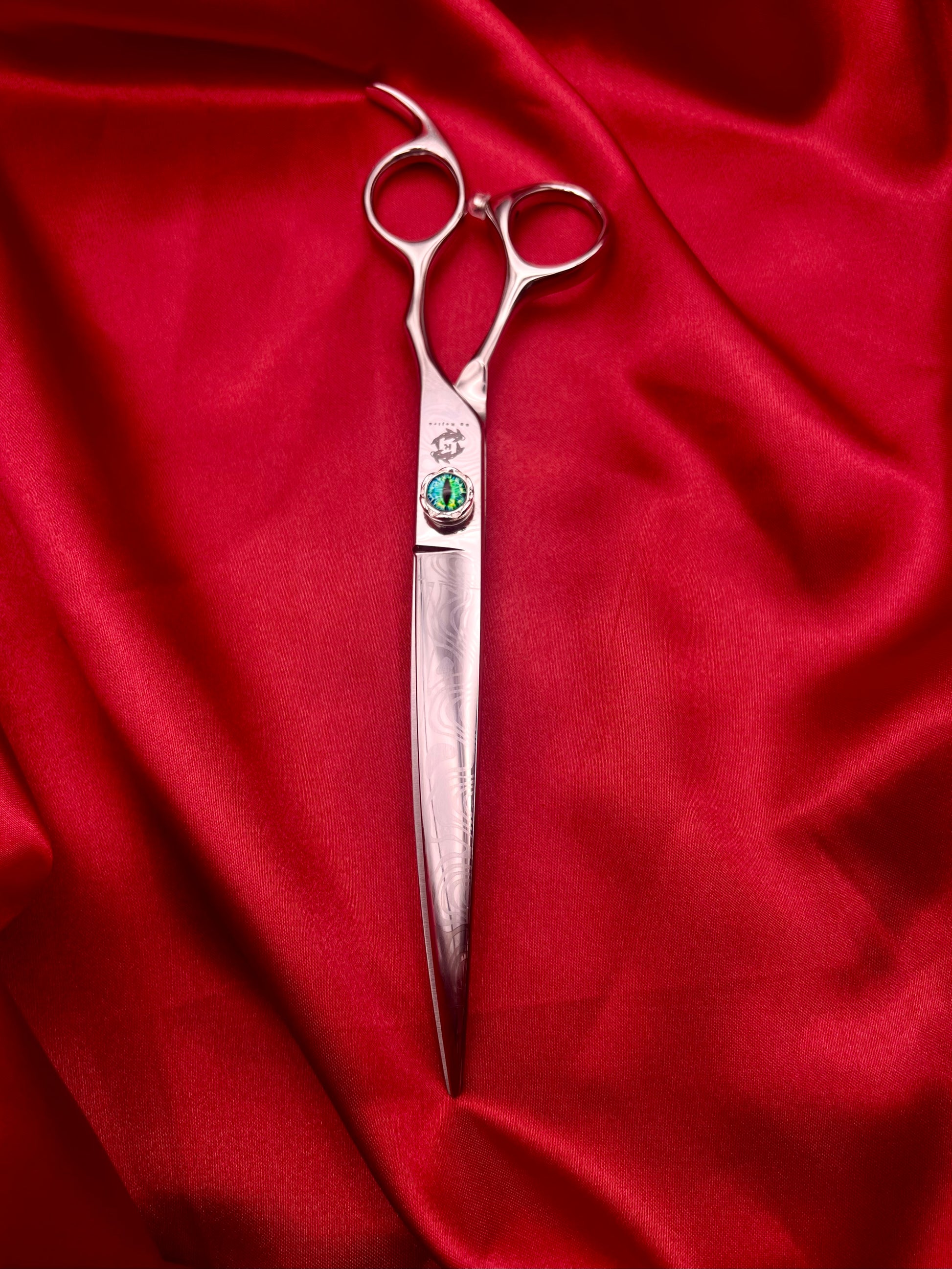 Hand finished by industry expert Nigel Waterworth to achieve perfect balance and smooth action, this scissor glides effortlessly through the coat, transforming structure into shape and shape into elegance. It is particularly valuable when refining outlines and creating natural flow, where straight blades may fight against the curve of the body.