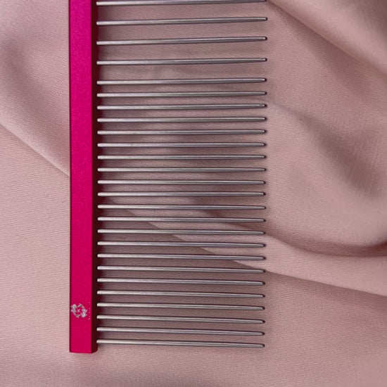 – Precision-spaced stainless steel rounded teeth ideal for fluffing, finishing, and line combing. Perfect for achieving an even, polished coat with smooth texture and natural lift.
